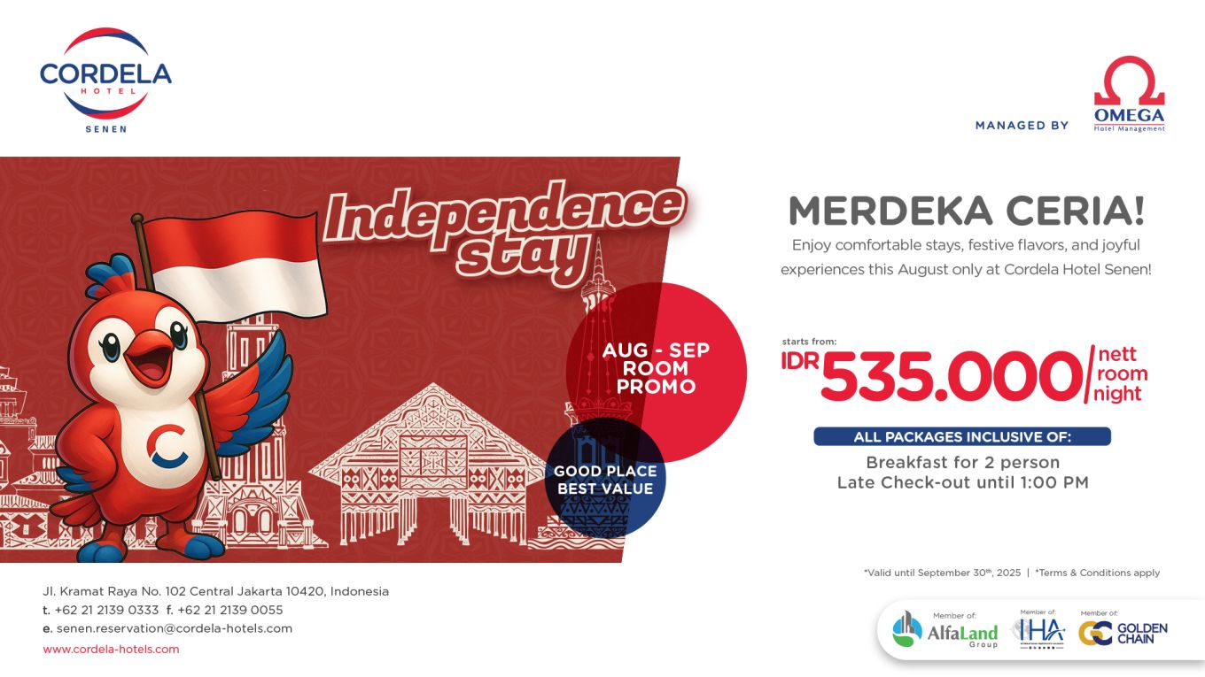 Click Here Celebrate Indonesia's independence with a joyful and memorable stay at Cordela Hotel Senen. Let the Merdeka Ceria spirit bring you closer to the city's culture, flavors, and warm hospitality. Book now and make your August and September truly special.