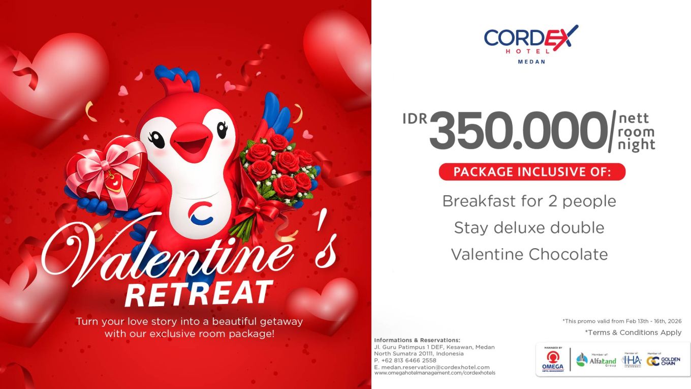 Celebrate a romantic escape this season with the Valentine Retreat at Cordex Hotel Medan, a perfect choice for travelers searching for a Valentine hotel promo in Medan that combines comfort, convenience, and memorable hospitality. Designed for couples who love traveling, staycations, and delightful culinary experiences, this exclusive room promotion invites guests to turn their love story into a beautiful getaway with exceptional value and service.