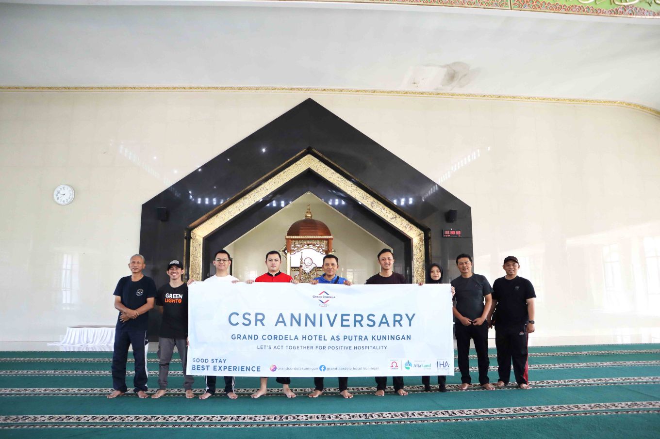 In the context of the 11th anniversary of the Grand Cordela Hotel AS Putra Kuningan, the Management of the Grand Cordela Hotel AS Putra Kuningan carried out corporate social responsibility (CSR) activities by holding social services to clean the Kuningan Islamic Center mosque. "As a form of CSR activity at Grand Cordela Hotel AS Putra Kuningan, we have carried out social service to clean the mosque on July 10 2023. This mosque cleaning activity was deliberately held, apart from improving social relations between employees of the Grand Cordela Hotel AS Putra Kuningan as well as establishing friendship with the surrounding community.