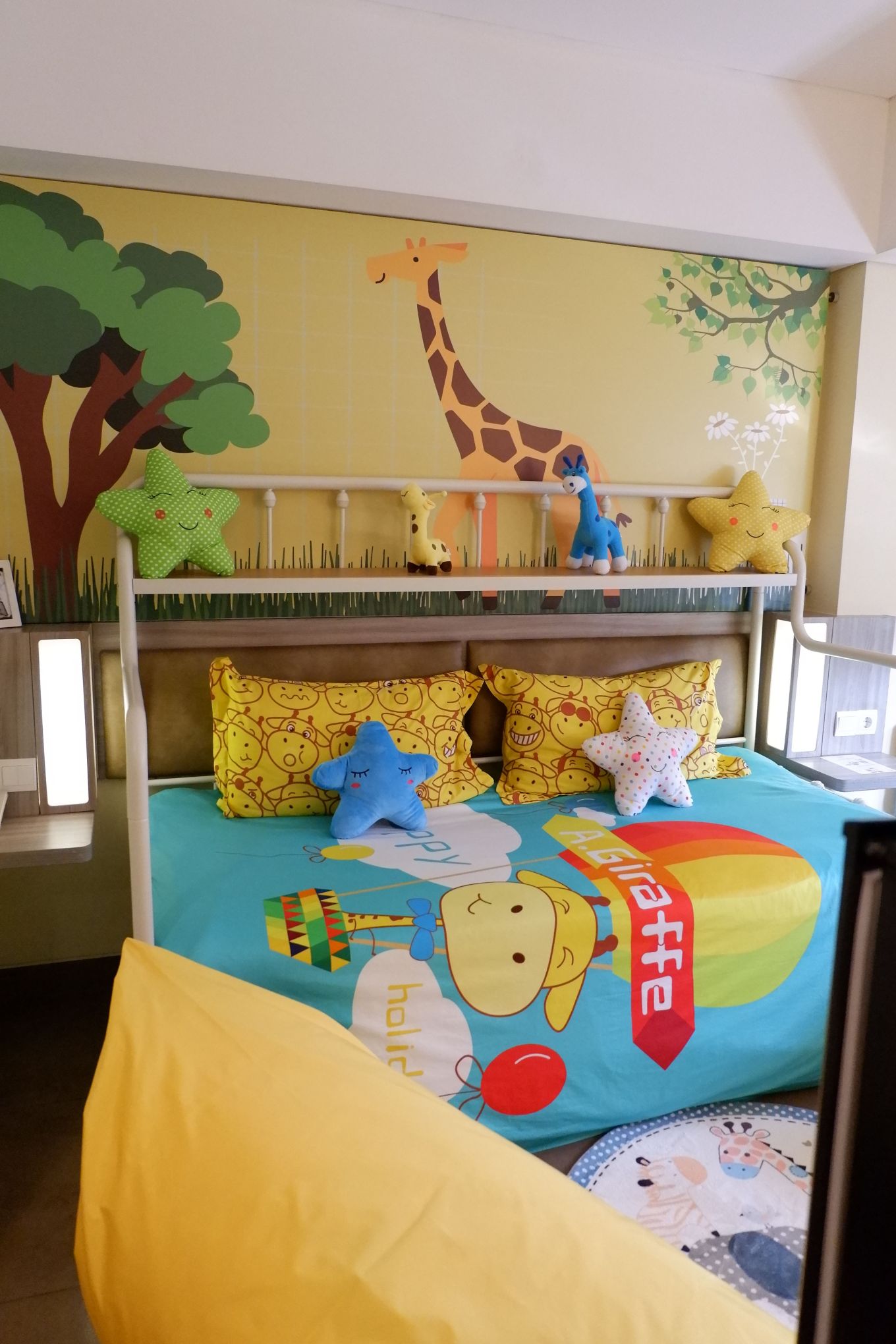 Welcome to the Giraffe Wonderland at Grand Cordela Hotel Bandung. Step into a world of playful giraffes and vibrant colors in our enchanting Giraffe-themed room. A Roam through the savannah with our giraffe friends as you embark on a wild adventure. Sleep under the twinkling stars surrounded by cheerful giraffe decorations and cozy blankets. Let your imagination run wild as you explore the charming corners of the room filled with delightful giraffe artwork and cuddly stuffed animals. This room is designed especially for our young explorers, promising a stay filled with joy, laughter, and the magic of the giraffe kingdom. We hope you have a roarin' good time in our Giraffe-themed room at Grand Cordela Hotel Bandung.