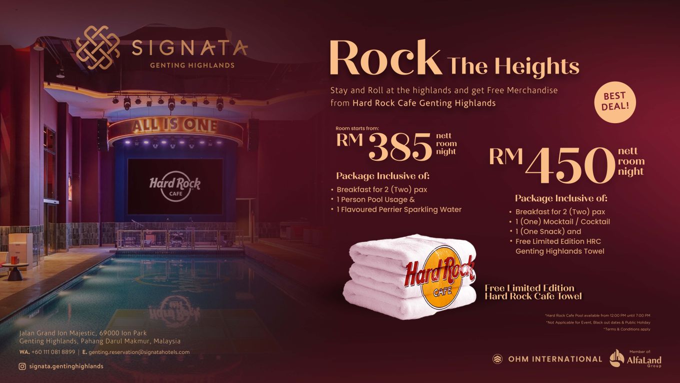 Signata Genting Highlands invites you to Rock the Heights with our exciting room package in collaboration with Hard Rock Cafe Genting Highlands. Enjoy premium stays, delicious breakfast, fun drinks, and exclusive Hard Rock Cafe merchandise that you can't get anywhere else.